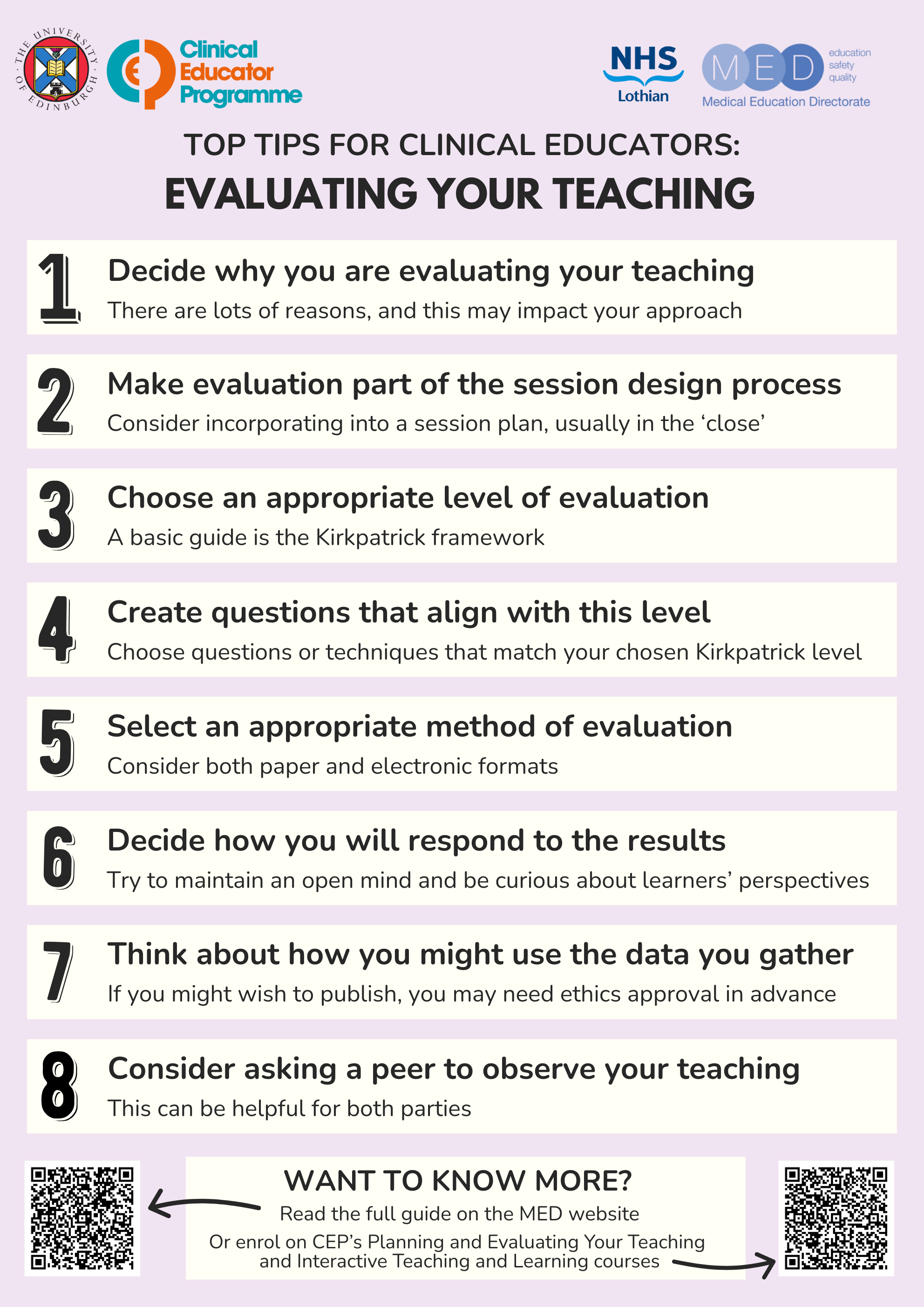 This guide is for you if you want to know how to evaluate a single learning event, such as one episode of clinical teaching or a tutorial, though similar principles apply to other situations, such as the evaluation of a whole course or programme.